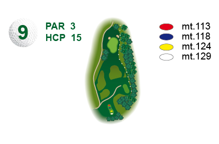 Si termina la prima parte del percorso con un Par 3 in salita, che non dà possibilità di scorgere il green e quindi non si ha la percezione di profondità dello stesso. Il green è comunque piuttosto profondo con leggere pendenze verso l'entrata ed è difeso da due piccoli bunkers in uscita. L'insidia più grande è rappresentata dal fuori limite che arriva vicinissimo alo green sulla destra.