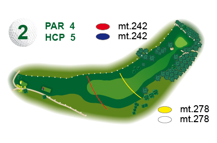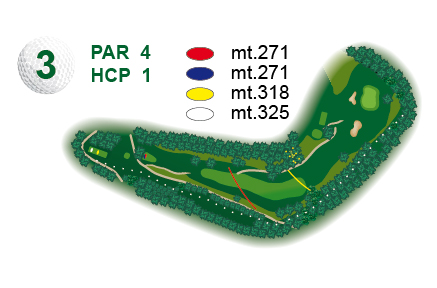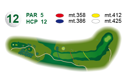 Dog leg a sinistra; il green non è raggiungibile con il primo colpo in quanto protetto da out, alberi e rough: è pertanto consigliato un primo colpo in sicurezza. Il secondo colpo è in salita,con green difeso da un insidioso bunker frontale e da alberi ai due lati.